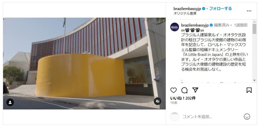 駐日ブラジル大使館Instagramアカウント投稿