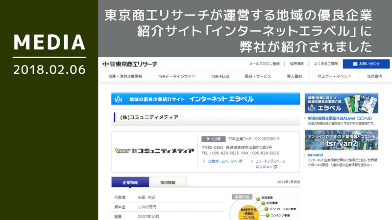 東京商工リサーチが運営する地域の優良企業紹介サイト「インターネットエラベル」に弊社が紹介されました